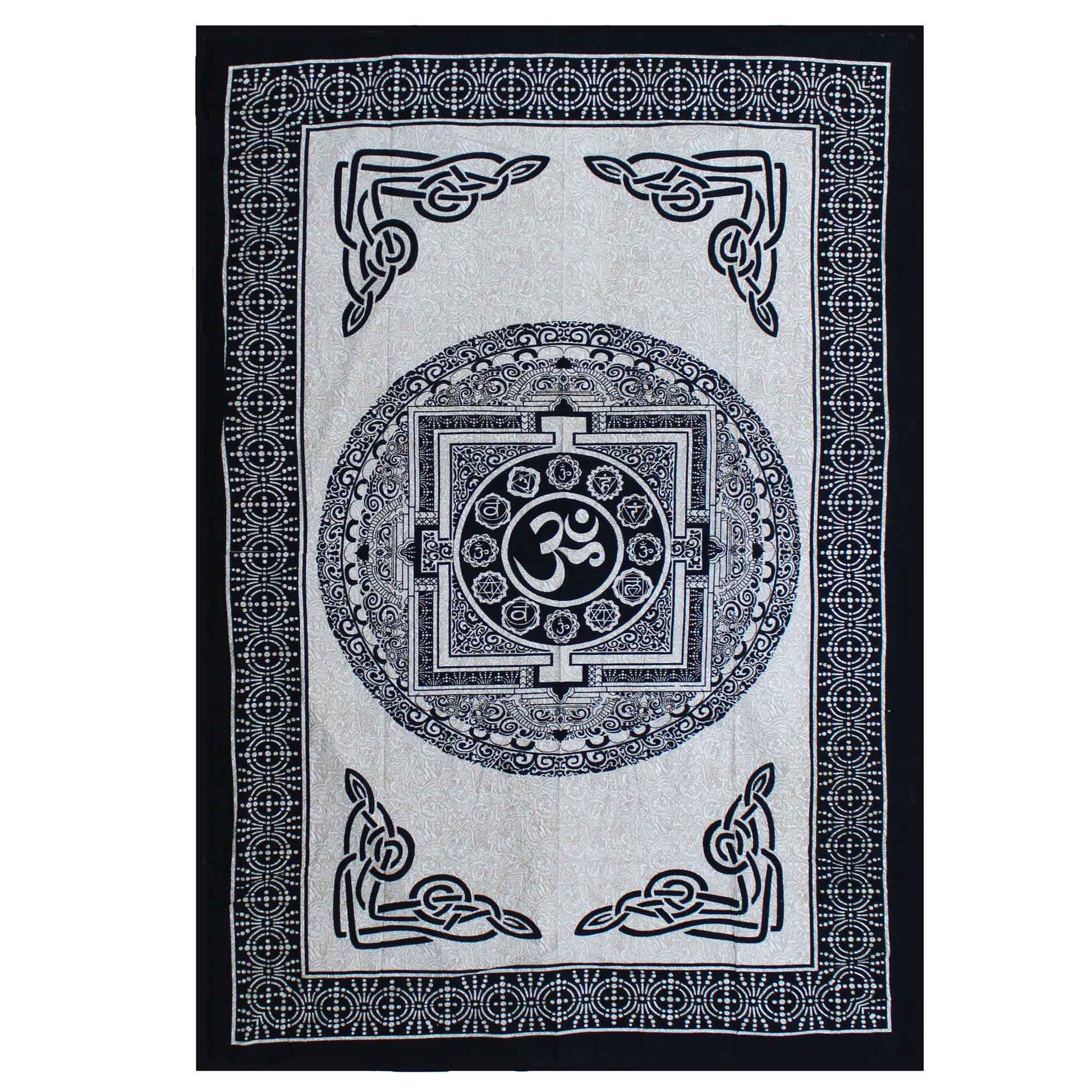 Single Cotton Bedspread + Wall Hanging - Mono - OM Mandala